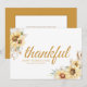 This set of modern and minimalist Thanksgiving cards captures the perfect balance of simplicity and elegance with a chic aesthetic. The design features a tasteful array of watercolor sunflowers, creating a gracefully floral aesthetic in calming shades of goldenrod yellow. No photo is required as the design speaks volumes by itself. Each card is emblazoned with 'Happy Thanksgiving' and 'Thankful' in a sleek, modern font that complements the minimalist design. To make these cards even more special, they come with an option for personalisation. As such, you can send your Thanksgiving greetings in a manner that's as unique as you are. These cards reflect a love for farmhouse-inspired designs, blending classic rustic charm with a refreshing modern approach. Each card is made from high-quality materials that add a touch of sophistication, ensuring your recipients feel the warmth and thoughtfulness behind your Thanksgiving wishes. Designed by Simple Desert Designs Studio.