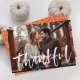 Modern Thankful Script Orange Photo Thanksgiving Holiday Card
