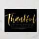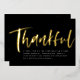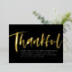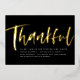 Bold and stylish, this modern Thanksgiving dinner invitation sets the tone for a stylish celebration. A brush script "thankful" in gold foil frames simple customisable text for all your party details. This invitation coordinates with the Lea Delaveris Design Thankful Thanksgiving collection. The backer is a speckled black.