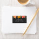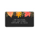 These Thanksgiving return address labels are decorated with watercolor fall leaves in autumnal colours on a dark background.