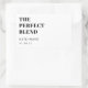Custom-designed wedding coffee favour stickers and labels featuring "The Perfect Blend" modern trendy black and white design.