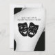 Very elegant theatre design in a modern black and white design. This is not your every day design but a fabulous artistic design that is perfect for a theatrical event. All the text can be customised to say what you want. You can delete areas of text also. The Greek theatre mask for Comedy and Tragedy are on both sides. This creative invitation is sure to entice people and will be a certain conversation piece for years to come.