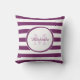 Modern Thick Stripes Monogram and Name in Purple Cushion