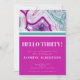 Bright Unique Agate Thirty 30th Birthday Party Invitation. Agate crystals and geodes continue to be a favourite trend! This print features and up close image of a teal or turquoise and purple or fuchsia hot pink geode stone, complete with little crystals and white banding. Accented with vibrant colour blocking to give it a modern and trendy look. Add your birthday party details and feel free to change the background colours if you prefer. Have fun with this 30th birthday as it is, or change out the year easily! Available as a printed invitation, or as a downloadable digital invite that you can send in e-mail or have printed locally!