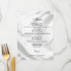 This wedding menu is the perfect match for a modern, simple, and elegant wedding theme. Its classic white silk background gives off a timeless class, while the minimalist design keeps it neat and stylish. The graceful script fonts add to the polished look, creating a smooth blend of simplicity and charm. Unlike traditional menus, this design focuses on understated elegance, allowing it to fit with any wedding style effortlessly. The minimalist approach not only highlights the menu’s chic appearance but also ensures clarity and ease for your guests. Designed to beautifully present your carefully curated dishes, this menu helps guests navigate your wedding feast with elegance and simplicity. It’s a smart and versatile choice that stands out with its perfect balance of class and simplicity, adding an elegant detail to your special day.