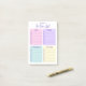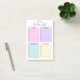 This practical, clean looking, personalised, notepad with four coloured categories with lines to write on and boxes to check off would be great for helping you organise your daily tasks. It's soft pastel colours are pink, purple, aqua, and peach and the modern, clean fonts are in purple. Get some for yourself and some for friends and loved ones. Because who can't use a little help staying organised and on task every day?