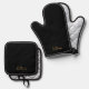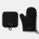 Modern Total Black & Gold Script Name Oven Mitt & Pot Holder Set