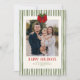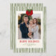 Personalised striped holiday photo cards with a red and green Christmas theme offer a stylish way to share warm wishes with family, friends, and clients. This modern traditional holiday card is designed for those who want a custom Christmas photo card that blends classic charm with updated style. Featuring space for one photo, this personalised holiday greeting is perfect for sending festive family updates or professional year-end messages. Ideal for modern family Christmas cards, business holiday mailers, or custom festive announcements, this design combines elegance and simplicity to create a premium seasonal keepsake. Whether you're sharing your annual family photo, a couple’s portrait, or a baby’s first holiday, this vertical photo card makes a lasting impression. Tailored for easy customisation, this timeless red and green holiday template is a go-to choice for anyone searching for a unique Christmas card design that feels both refined and heartfelt. Make your holiday message stand out with this beautifully personalised photo holiday card. Available as printed cards or an instant digital download.