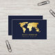 Modern Travel Agent World Map Navy And Gold Business Card