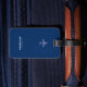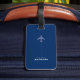A nice blue bag-tag... elegant and modern design to help identify your baggage at the airport... custom name... templates for information about you... with the image of the map of world and an aeroplane