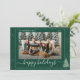 Modern Tree Festive Lights Snow Xmas Photo Green Holiday Card