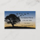 This elegant card has the silhouette of a magnificent oak tree with a V of geese flying by against a soft gradient sunset sky. Your customers will not forget this card.
