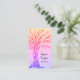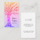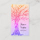 This unique business card is decorated with a Tree of Life design on a colourful background of purple, pink and yellow.