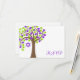 A chic and stylish Tree of Life themed Bat Mitzvah RSVP card. Shown in purple, green and brown.