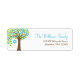 A chic and stylish Tree of Life themed Bat Mitzvah return address label. Shown in teal blue, green and brown.