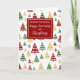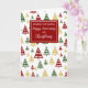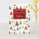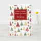 Happy anniversary on Christmas card with modern christmas trees pattern.