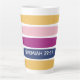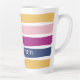 Modern Trending Striped Christian JEREMIAH 29:11 latte mug in raspberry, yellow, green and blue horizontal stripes, with the Scripture verse JEREMIAH 29:11 - For I know the plans I have for you, says the Lord. This Bible reference is CUSTOMIZABLE so you can add your name or create your own text. This Christian striped latte mug in trending colours would make a bright addition to your Christian mug collection, and would make a great gift for Christmas and birthdays. Choose from a wide selection of Christian inspirational mugs designed by Berean Designs.
