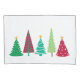 Contemporary bright coloured Christmas trees make up this trendy holiday design. Red, green and tiffany blue colours on a crisp white background. A design for the person who wants a simple holiday design.