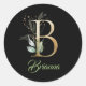 Modern trendy B monogram green and gold foil black Classic Round Sticker