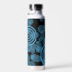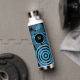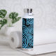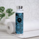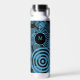 Modern, trendy blue circles on black monogram water bottle