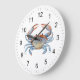 Modern Trendy Blue Watercolor Crab Summer Beach Large Clock