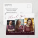 Modern Trendy Burgundy Red 3 Photo Grad Thank You Postcard