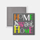A modern grey background with colourful neon letters "Home Sweet Home". Stylish decoration for your home with trendy block typography design. Great gift for new home or housewarming party.
