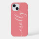 Modern Trendy Coral Pink Calligraphy Script Name iPhone 15 Case