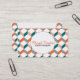 A classy, stylish business card with a trendy, modern geometric cube pattern in grey, orange, teal, pink and white. So easy to customise with your own personal business details and suitable for any type of business.