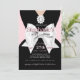 Modern Trendy Glam Pink Tiffany Baby Shower Invitation. This modern blush pink baby shower stationery is perfect for the mother to be who has everything and embraces her fancy, even a little bougie, side! With pearls and a white bow this breakfast, brunch or luncheon shower invitation work for boy, girl or gender neutral baby showers with a trendy vintage tiffanys theme.