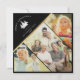 This modern Christmas card shines through a super unique fun 3-photo layout, trendy script and minimalist typography as well as the fresh use of the rustic distressed Christmas tree illustration. Please customise with your 3 favourite pictures, family name and year - and the opportunity to change the greeting as well. Backside has an elegant gold stripe pattern. This is the black version.