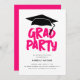 Celebrate your graduation in style with a modern, trendy 'GRAD PARTY' invitation. This fun and edgy graffiti-style design features pink lettering and a unique black motarboard floating over the top, making it the ultimate statement piece for your celebration. Don't miss out on this customisable and eye-catching invitation, available in both pink and blue!