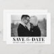 Modern Trendy Save The Date Black and White Photo Card with block script and calligraphy script combination.