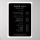 Modern, simple, salon price list, black & white.