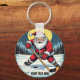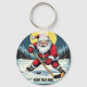 Modern Trendy Santa Playing Ice Hockey Custom Key Ring