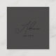 A beautiful black on dark grey script design featuring modern trendy font. A simple and professional way to introduce your business. QR code, your own social media icons can be customised in this business card. Personalise your details to create your own unique business card.