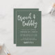 Modern Trendy Script Brunch Bubbly Bridal Shower Invitation in Dark Sage Green