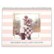 This stylish 2024 calendar features either pink and white or black and white stripes on alternate months, with your choice of photo and personalised caption on each page. A faux gold frame overlay sits on each photo to add a bit of glam. You can also add a cover photo and your choice of calendar title.