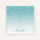 Modern Elegant Fashionable and Trendy Aqua Blue Glitter Notebook personalised with your Name. Stylish Script. Dripping Glitter with sparkles.