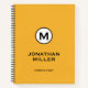 Modern notebook features a minimal design in trendy bright yellow, black and white. Custom name and title presented in stylish simple font with a complimentary minimal monogram medallion.