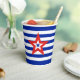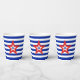Modern Tri-Coloured Star on Blue/White Striped Paper Cups