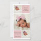 Introduce your new little one to the world with this beautiful modern birth announcement by katkadoodle.com. Soft pretty-in-pink background, contemporary typography in mocha brown, and simple styling features three portrait photos of your sweet baby. Other colours also available.