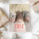 The Modern Baby First Christmas Custom Photo Holiday Card provides a stylish and personalised way to commemorate your baby's first Christmas. With its sleek design, high-quality materials, and customisable photo and text options, this card offers a contemporary take on holiday greetings. It’s a perfect choice for parents who want to share the joy of their baby’s first festive season with elegance and modern flair. Make your holiday season unforgettable with this beautiful and meaningful card that celebrates the newest addition to your family.
