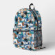 Modern Tropical Checked Pattern Blue Monogram Printed Backpack