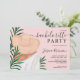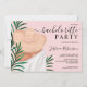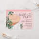 Looking to plan the perfect beach bachelorette party? Get this unique hand painted modern and cool hand painted fashion illustration of a tropical green watercolor palm tree leaf with a woman wearing a straw watercolor hat and pink bow, with an elegant script calligraphy on light pink. Perfect for weekend getaway and destination party.