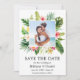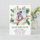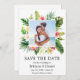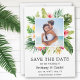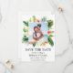 Modern Watercolor Tropical Floral, Greenery and Palm Leaves Save The Date Photo Engagement Announcement Card
