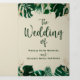 Tropical Foliage Trendy Greenery and Leaves Border Personalised Wedding Ceremony Tri Fold Programs. Perfect for your wedding or event stationery order of services list. In a bold colour palette of rich greens, emerald, and gold foil look. This design is perfect for a beach, destination, or summer wedding. With feelings of a tropical paradise, this vivid palm leaf design will compliment your beach or tropical wedding venue. In a dark green, teal, emerald, greenery, and gold colour scheme - Wedding Ceremony Tri Fold Programs.
