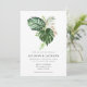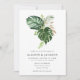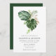 Elegant tropical wedding invitations featuring a bouquet of watercolor monstera leaves, faux gold foil and green foliage accents with your names and wedding details below. The invitation reverses to a solid tropical green background. Perfect for summer and beach weddings! Designed to coordinate with our Tropical Gold wedding collection.
