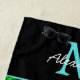 Modern Tropical Leaves Green Teal Blue Black Beach Towel