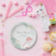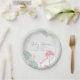 Baby Shower Paper Plates | Modern Tropical Leaves Pink Flamingo - Tropical Leaves Pink Flamingo Gender Neutral Baby Shower - New mother flamingo and her baby set in a geometric terrarium style frame surrounded by light pastel muted green tropical leaves all on a whitewash wood background - easy to personalise - design ©WhimsicalArtwork™